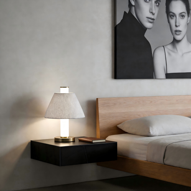 A lámpatest masszív vasból készült, és szálcsiszolt réz színű galvanizálási eljárással kezelték, finom és csúcsminőségű fémes textúrát adva. A fehér selyemszövet árnyalat puha és egyenletesen szórja szét a fényt, meleg és gyengéd megvilágítású légkört teremtve. A 20 W-os LED fényforrás 2000 LM nagy fényerővel kombinálva kielégíti a napi világítási igényeket. A semleges 4000K-os színhőmérséklet (2700K, 3000K, 5000K stb.-re testreszabható az ügyfél igényei szerint) és az Ra80 feletti színvisszaadási index biztosítja a tárgyak valódi színvisszaadását, kényelmes vizuális élményt nyújtva akár olvasáshoz, munkához vagy pihenéshez.